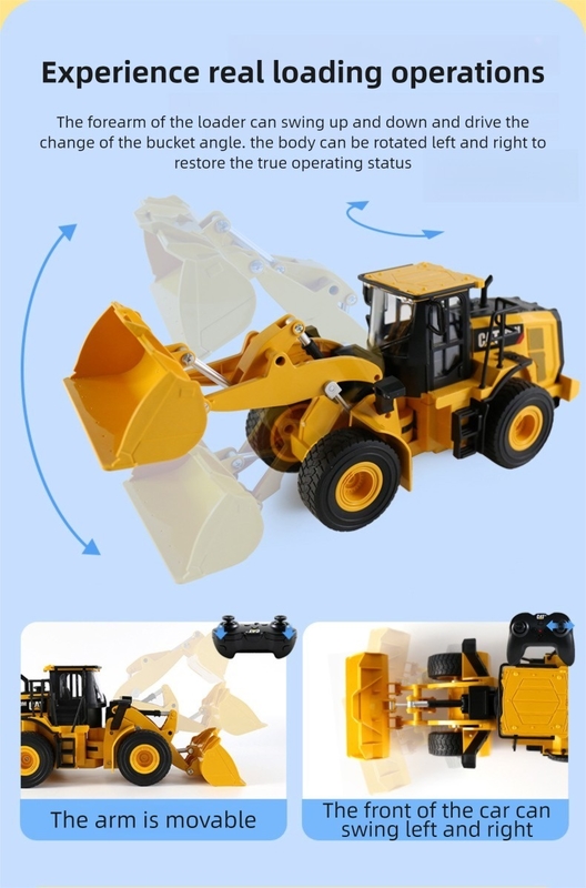 Dieser 1:24-Maßstab-Lader wurde aus langlebigen Materialien gefertigt und ist so gebaut, dass er enthusiastischem Spielen standhält. Sein sorgfältiges Design fängt die Essenz eines Schwerlast-Bau Fahrzeugs ein und verfügt über eine bewegliche Frontschaufel, die angehoben und abgesenkt werden kann, genau wie bei einem authentischen Lader. Die leuchtenden Farben und detaillierten Akzente tragen zu seinem realistischen Erscheinungsbild bei, regen die Fantasie an und fördern kreative Spielszenarien. Dieses Spielzeug wird mit einem elektrischen, wiederaufladbaren Akku betrieben, der kontinuierlichen Spaß ohne ständigen Batteriewechsel gewährleistet.